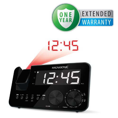 !±8±Magnasonic MAAC500 AM/FM Projection Clock Radio with WakeUp! Battery Backup Alarm, Jumbo 1.2 inch LED Display, SelfSet Auto Time Set & Dual Alarm & Bonus 1 Year Warranty